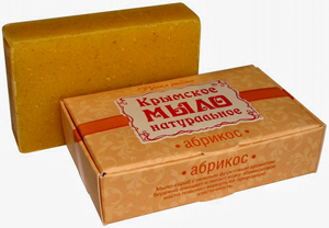 Состав: омыленные растительные масла (кокосовое, оливковое, пальмовое, рициновое), вода подготовленная, масло абрикосовых косточек, молотые косточки абрикоса, экстракт абрикоса, аннато, облепиховое масло.